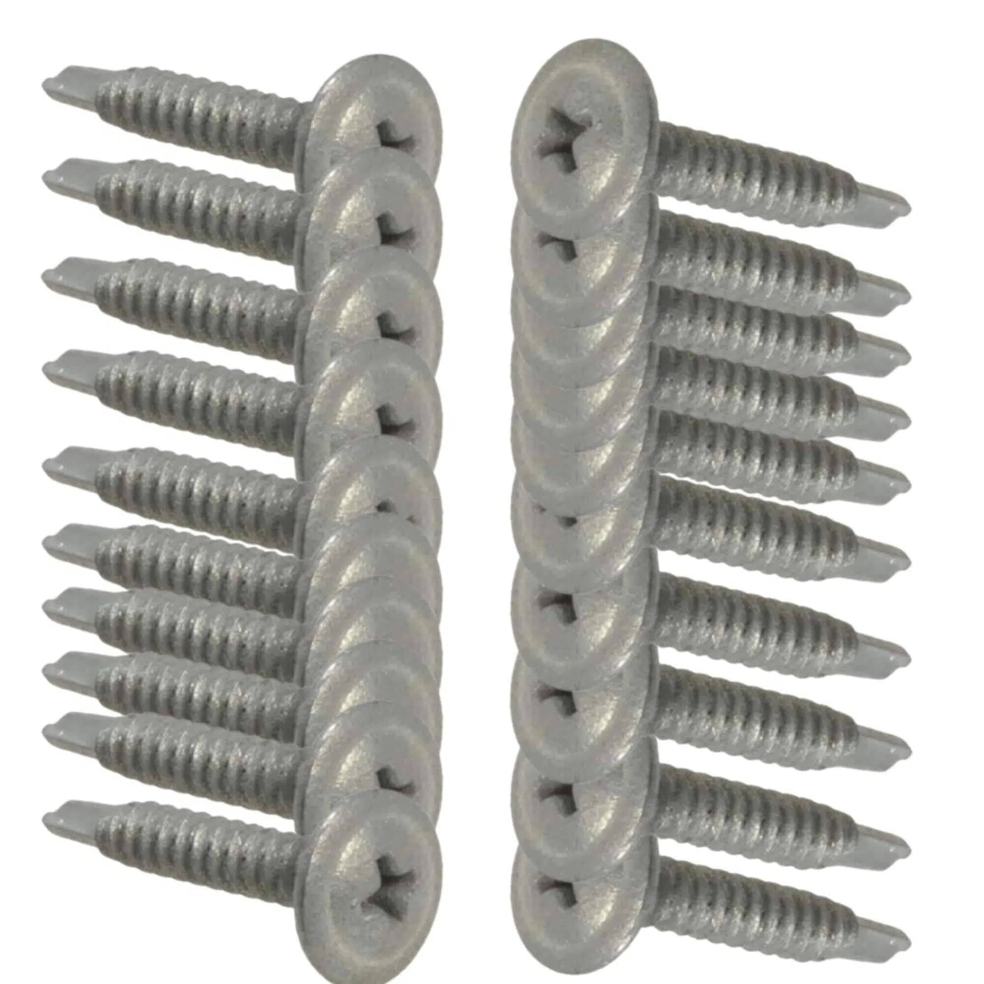 High quality Class 3 coated screws specifically designed for attaching artificial vertical garden panels to cement sheet or blueboard walls. The relatively wide head provides optimal grip while the self-drilling tip eliminates pre-drilling. Each 20mm galvanized screw features a Phillips head for easy installation. Recommended usage: 1 screw per 25cm section. Pack contains 20 pieces—sufficient for securing standard garden panels while ensuring durability against outdoor conditions.