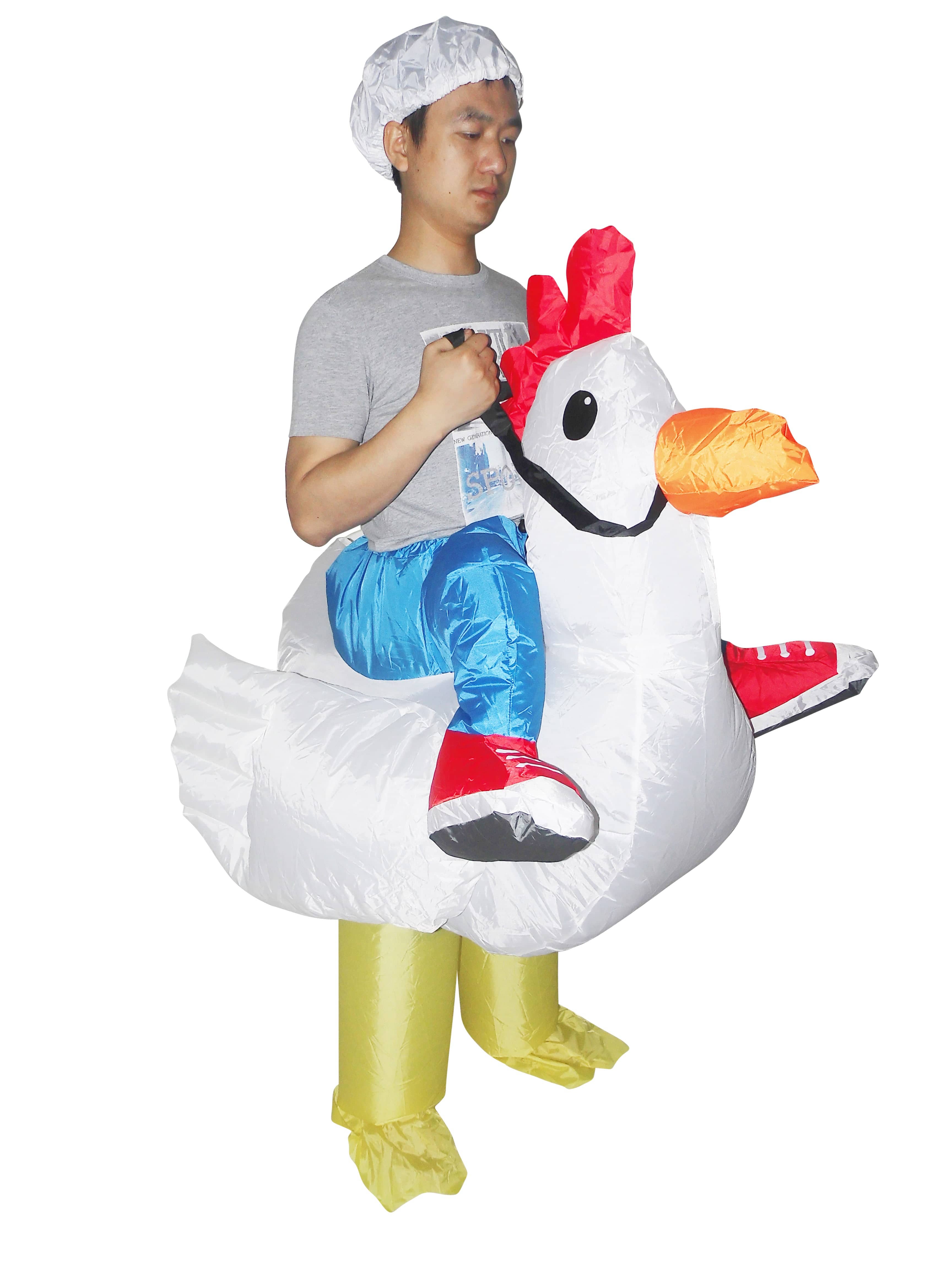 Bring some real fun and surprises to the next party you attend. Crash the party wearing our Inflatable Fan-Operated Chicken Costume. You"ll be comfortable in this costume made of feather-light material. You"ll be the center of attention and every party guest will be delighted with this comical, bright and unforgettable costume!