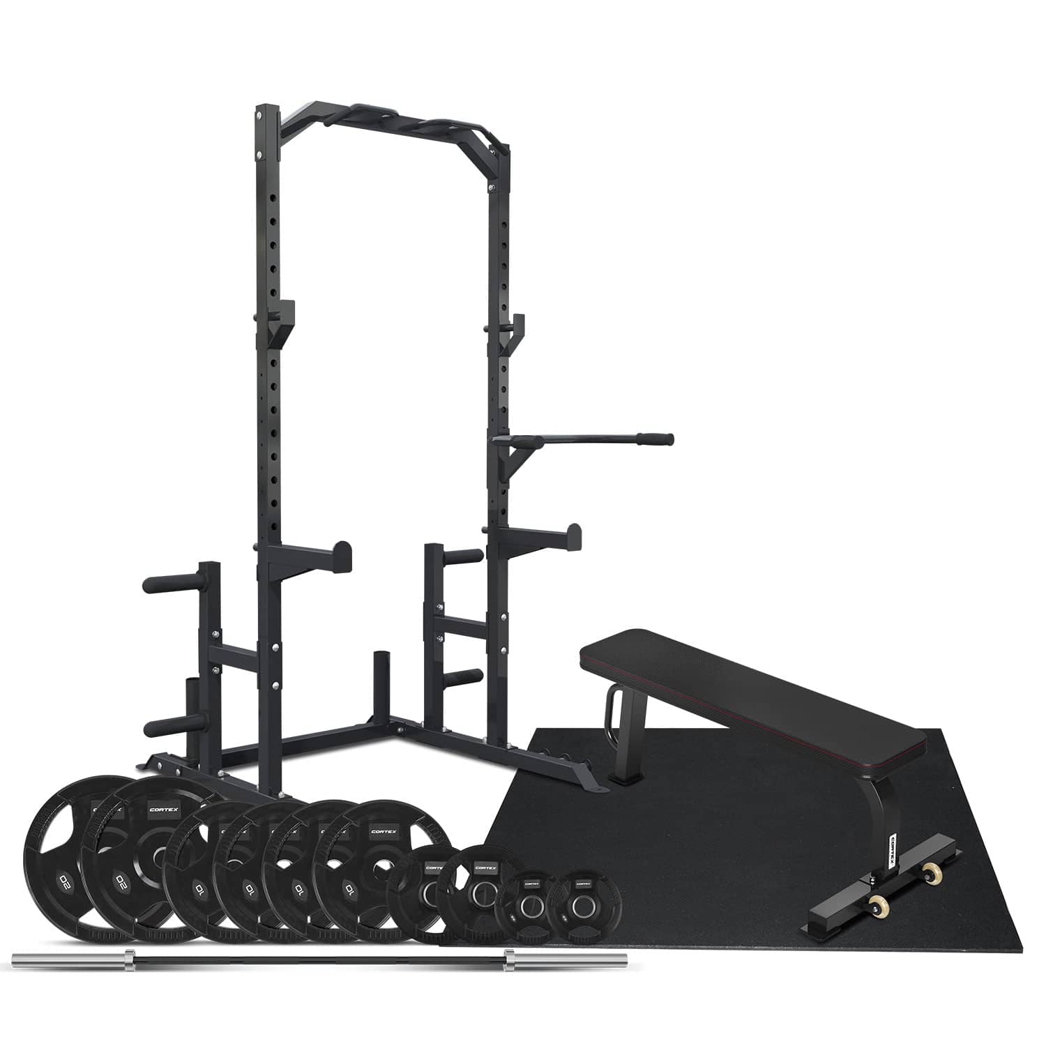 Beginning your home gym journey? Find everything you need here to set up your first home gym. The Half Rack Home Gym Package comes complete with a half power rack, flat bench, Olympic barbell, 95kg of tri-grip Olympic plates, and a set of 6 rubber gym floor mats. Taking up less space than a full power cage, the PR-2 comes with band pegs, dip attachment, chin-up handles for the ultimate versatile workout. Train harder with a variety of Olympic weight plates and our CORTEX SPARTAN100 7ft 20kg Olympic Barbell. THIS PACK CONTAINS 1x CORTEX PR-2 Half Rack 1x CORTEX BN-7 Flat Exercise Bench 1x CORTEX SPARTAN100 7ft 20kg Olympic Barbell with Lockjaw Collars 1x CORTEX 20kg Tri-Grip 50mm Olympic Plates (Pairs) 2x CORTEX 10kg Tri-Grip 50mm Olympic Plates (Pair) 1x CORTEX 5kg Tri-Grip 50mm Olympic Plates (Pair) 1x CORTEX 2.5kg Tri-Grip 50mm Olympic Plates (Pair) 1x CORTEX 10mm Commercial Bevelled Edge Rubber Gym Tile Mat (1m x 1m) Pack of 6