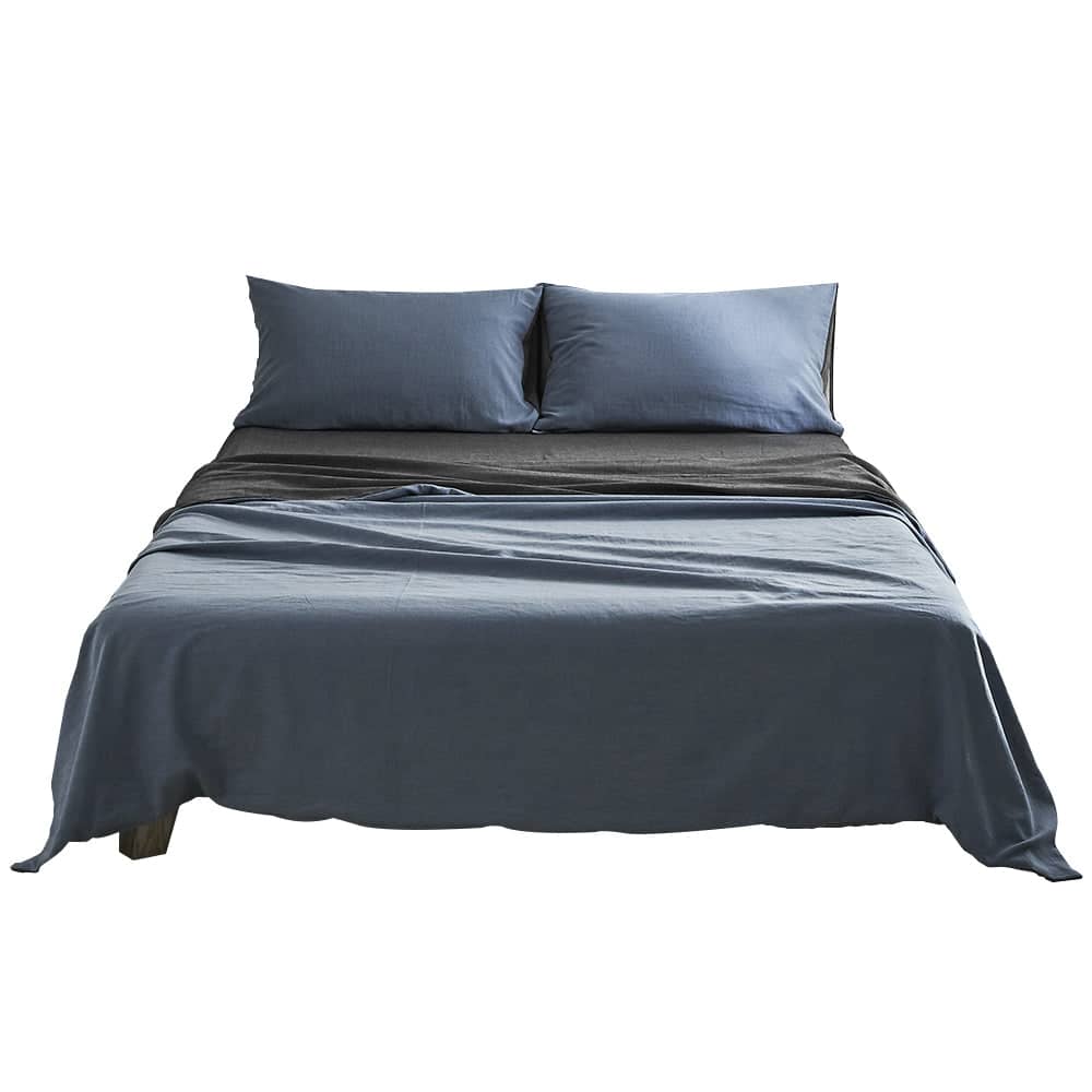 Cosy Club Sheet Set Cotton Sheets King Blue Dark Grey