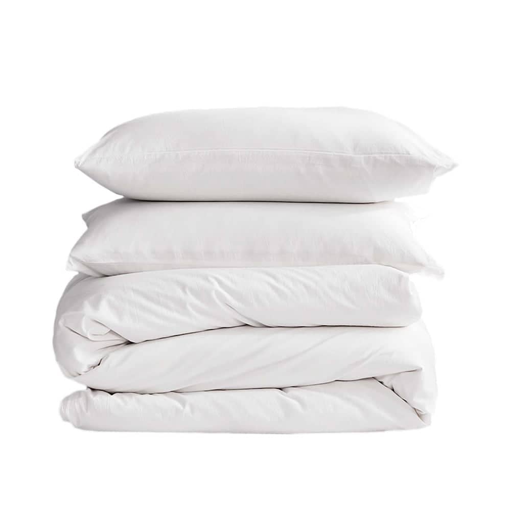 Cosy Club Washed Cotton Quilt Set White Double