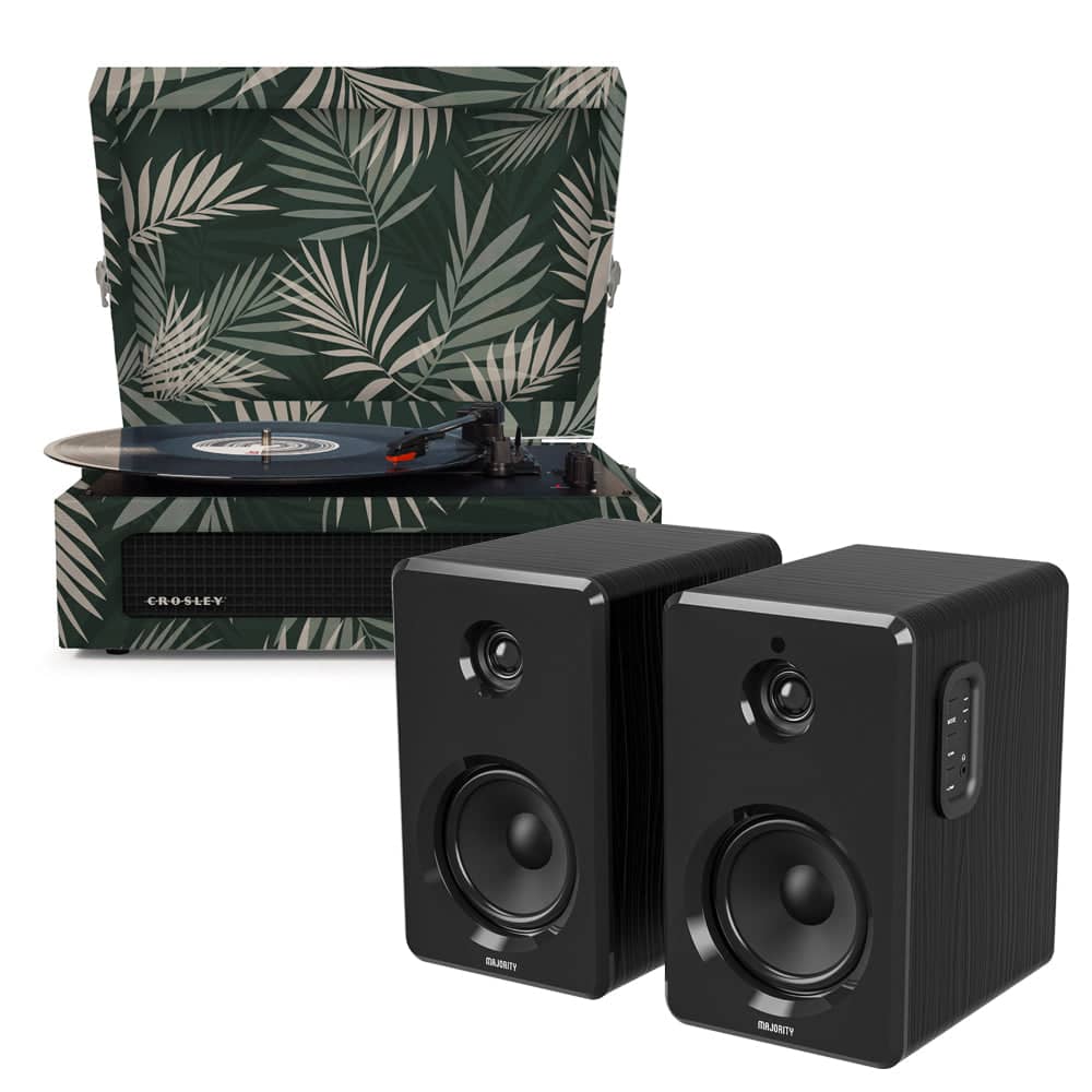 Crosley Voyager Bluetooth Portable Turntable - Botanical + Bundled Majority D40 Bluetooth Speakers - Black