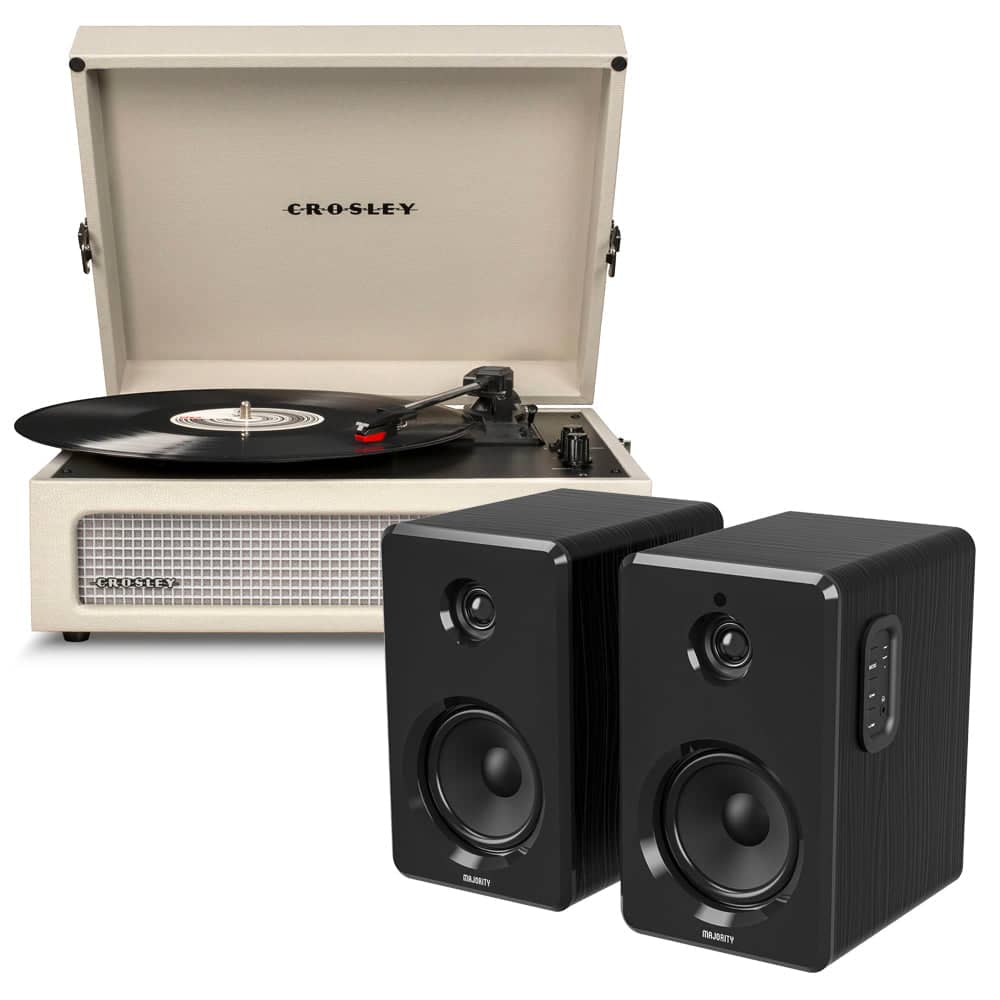 Crosley Voyager Bluetooth Portable Turntable - Dune + Bundled Majority D40 Bluetooth Speakers - Black