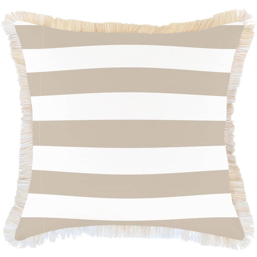 Cushion Cover-Coastal Fringe Deck-Stripe-Beige-60cm x 60cm