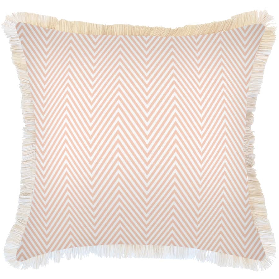 Cushion Cover-Coastal Fringe Natural-Zig Zag Blush-60cm x 60cm