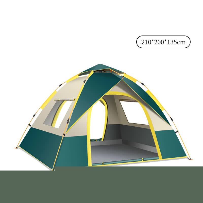 Dark Green 3-4 Person Lightweight Camping Tent (210*200*135cm) | UV Protection Silver Coated, Dual Doors & Windows