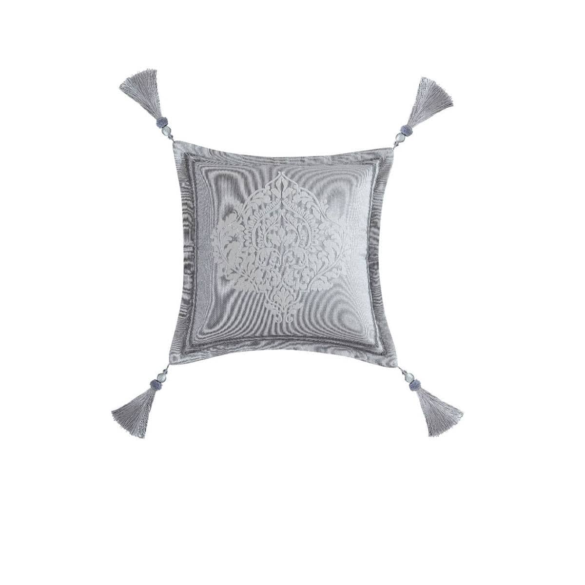 An intricate jacquard-woven damask, optimising the sheen and texture of the chenille and lurex yarn within the grand design. The polished ivory and silver colour scheme will add depth and interest to any room. Adding a simple double grosgrain tape along the attached flange elegantly finishes the design. Style with coordinating European pillowcases and square cushion to complete the ultimate aesthetic.