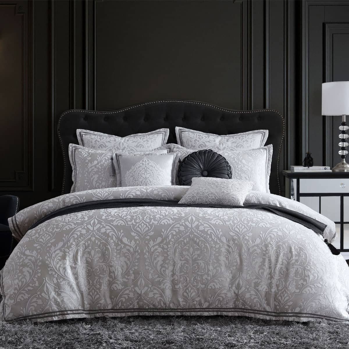 Davinci Alexander Silver Woven Jacquard Quilt Cover Set King