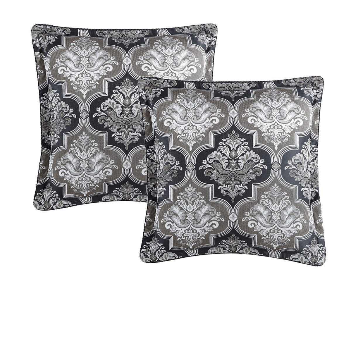 This Pair of Chamonix Silver European Pillowcases by Davinci is the pinnacle of classic bedroom style. Featuring large scale and highly stylised damask motifs in silver, black, and charcoal. Reversible European pillowcases allow for flexible styling options with damask jacquard one side contrasted against a stripe on the other.