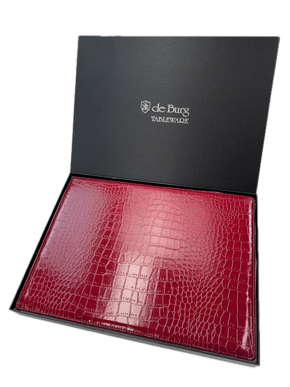 Elevate your table setting with the de Burg 4 Piece Table Place Mat Set, where functionality meets sophisticated design. Each placemat is finely crafted from high-quality PU material, guaranteeing durability and a sleek appearance. The eye-catching croc pattern finish brings an element of luxury and distinctive style to your dining environment.