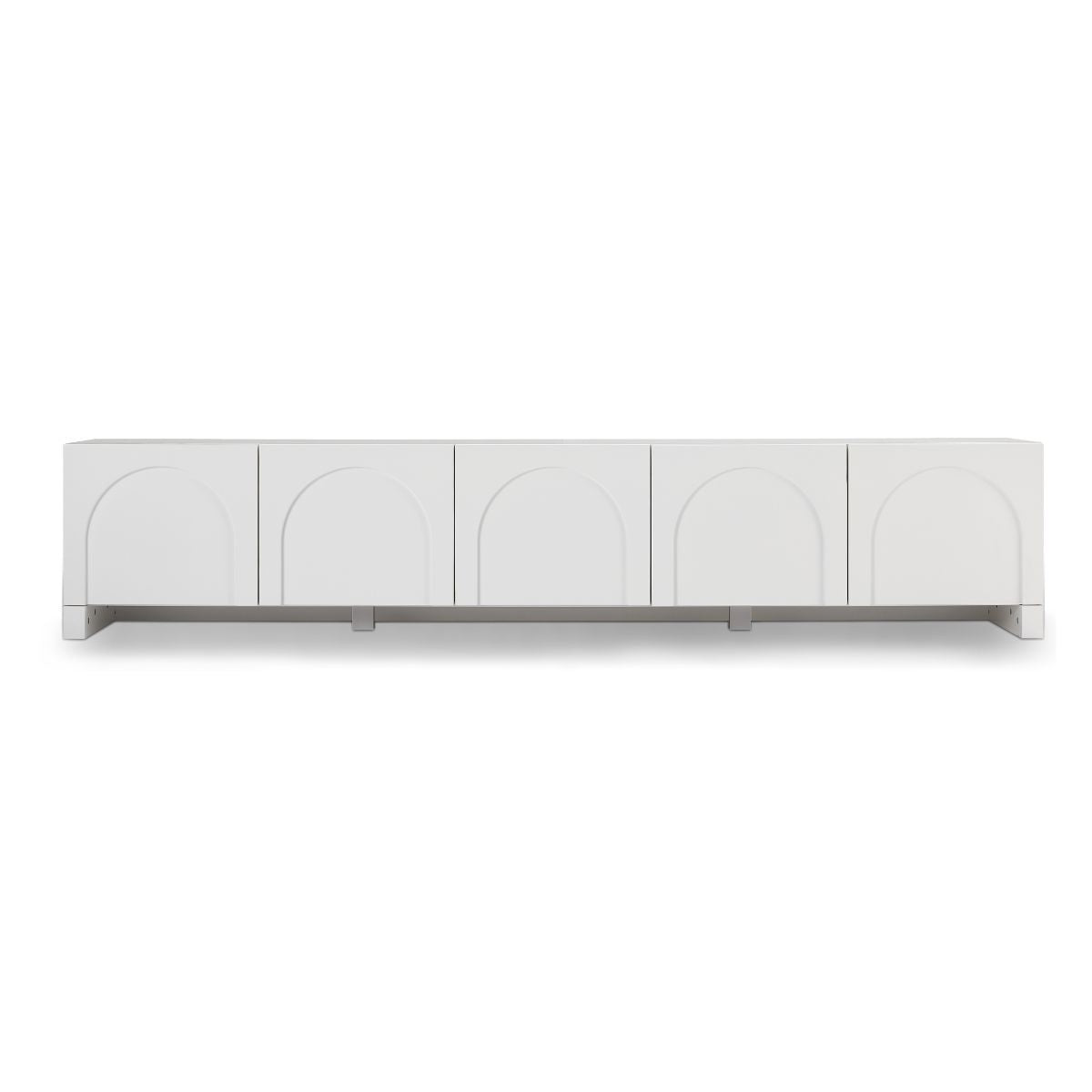 Perfect Living Room AdditionOur Dome White TV Unit is not afraid of mixing business and pleasure. Under its stylish exterior, it packs a punch with must-have features such as plenty of storage for your electronics and a discreet cable hole.