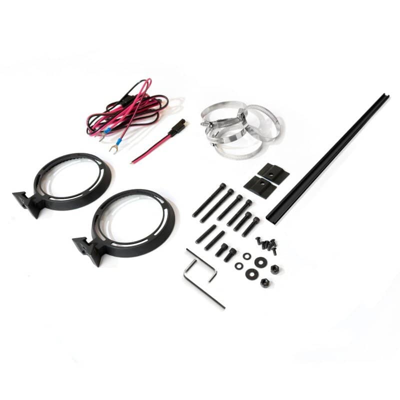 CIRCULAR BRACKETS MOUNT TO THE SOUND EXREME ALLOWING FOR 360 DEGREES OF ROTATION. INCLUDES: CIRCULAR MOUNTING BRACKETS, RUBBER PADS, 2 SETS OF HOSE CLAMPS (MEDIUM AND LARGE), ASSORTED SCREWS OF VARIABLE LENGTHS, WASHERS AND BOLTS, 12V POWER CABLE
