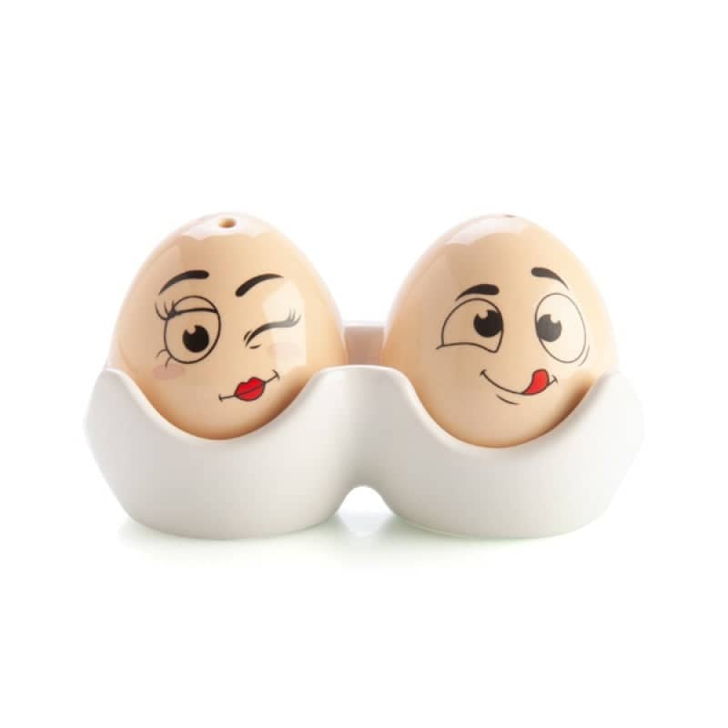 Egg-cellent salt and pepper set shaped like Mr & Mrs Egghead