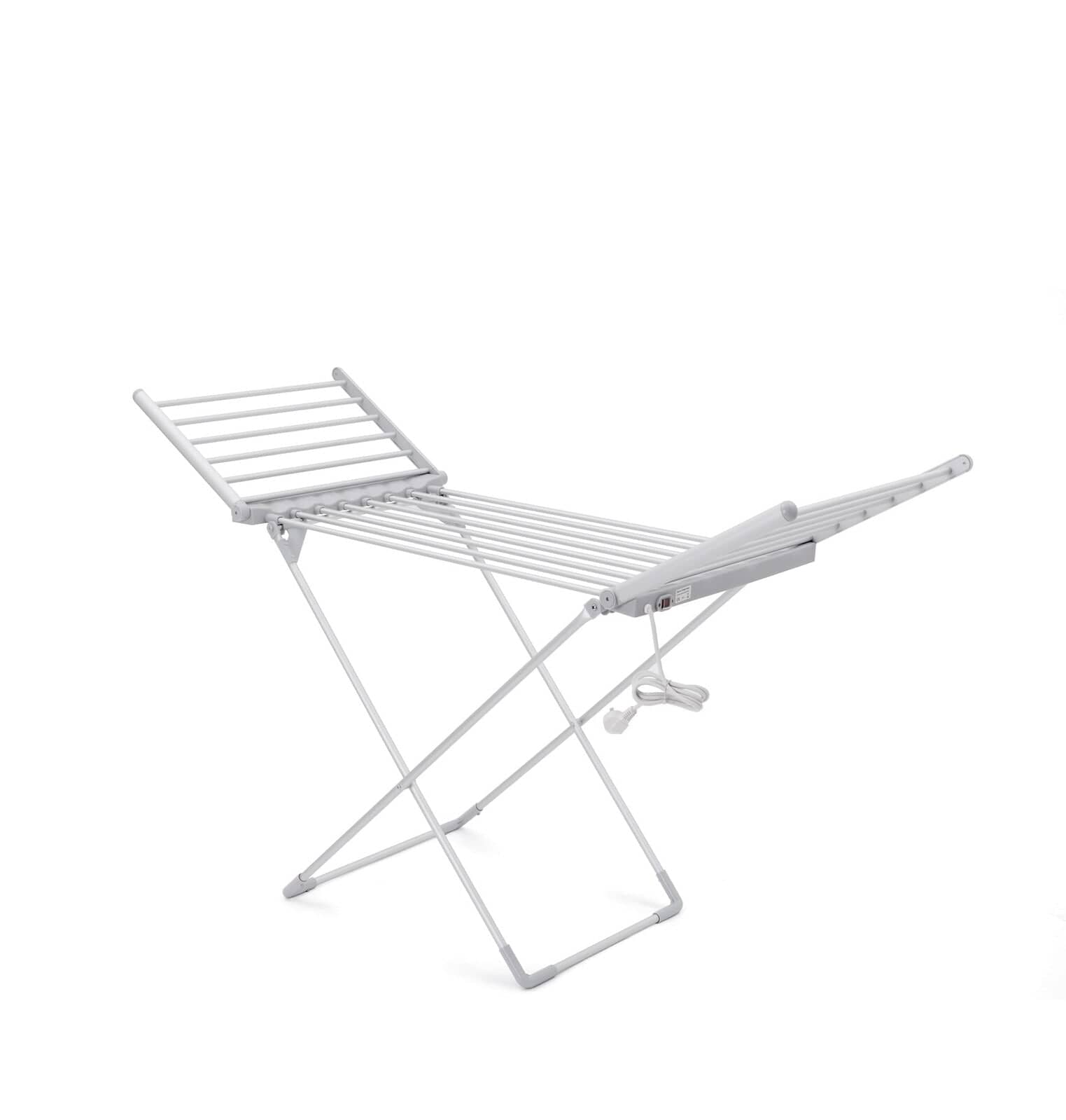 The Lenoxx Electric Freestanding Heated Towel and Clothes Rack Dryer, offers a more efficient way to dry your day-to-day items. It features 20 heated bars that effectively warm your clothes as they air-dry. With this innovative technology, you can dry loads of day-to-day items faster and more efficiently. The dryer is designed to be easy to fold and store, and comes with two attachable wings for bigger loads. Additionally, it's simple to set up and use right out of the box.