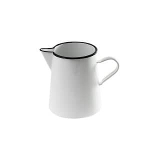 Urban Style Authentic HANDMADE Romanian Enamelware Products are made with a base metal consisting of Carbon Steel and Finished by hand with a Porcelain Enamel Coating. Strong Yet Lightweight, Easy to Clean, Non-Porous, Functional, Stylish, Durable, and available in various colours and products. Food Safe & Dishwasher Safe. Suitable for use on all stove tops including induction and ovens. Creating an eclectic mix of Modern and Rustic. Select matching or contrasting colours for eye catching table settings and serving options. The White Premium 1 Litre Pitcher with Black Rim is manufactured in one piece and has no seams for liquid to accumulate. Ideal for Water, Juice, Beverages or as a Cutlery Holder, a vase, or any other purpose required. Perfect Size for Cafes. Restaurants, Hotels or for home use. Dishwasher Safe Heat Safe in excess of 450 degrees Centigrade.