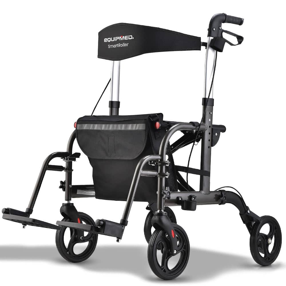 Make the smart choice and enjoy well the mobility you deserve with the Equipmed SmartRoller 2-in-1 Rollator and Transit Wheelchair.