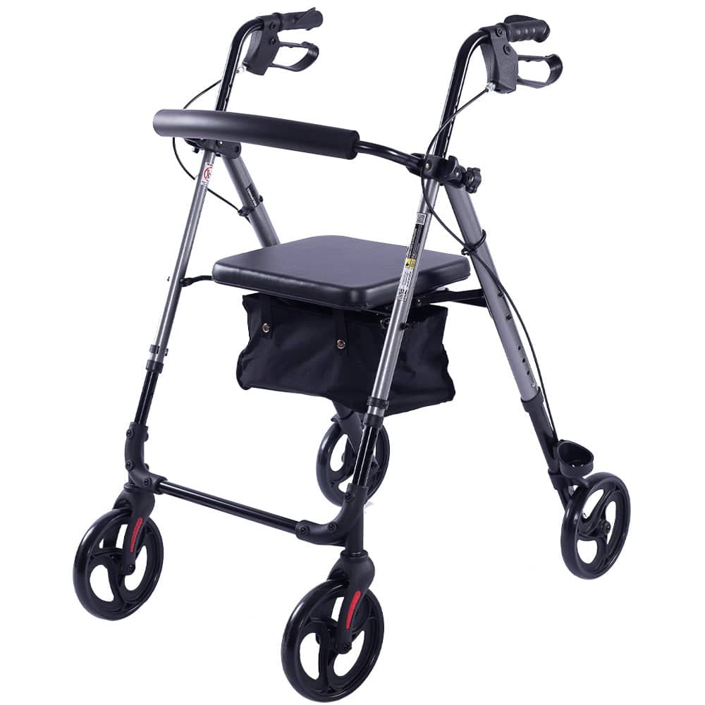 EQUIPMED 4 Wheel Lightweight Rollator Walker, Aluminium Frame, Seat, Carry Bag, for Seniors, Titanium Style
