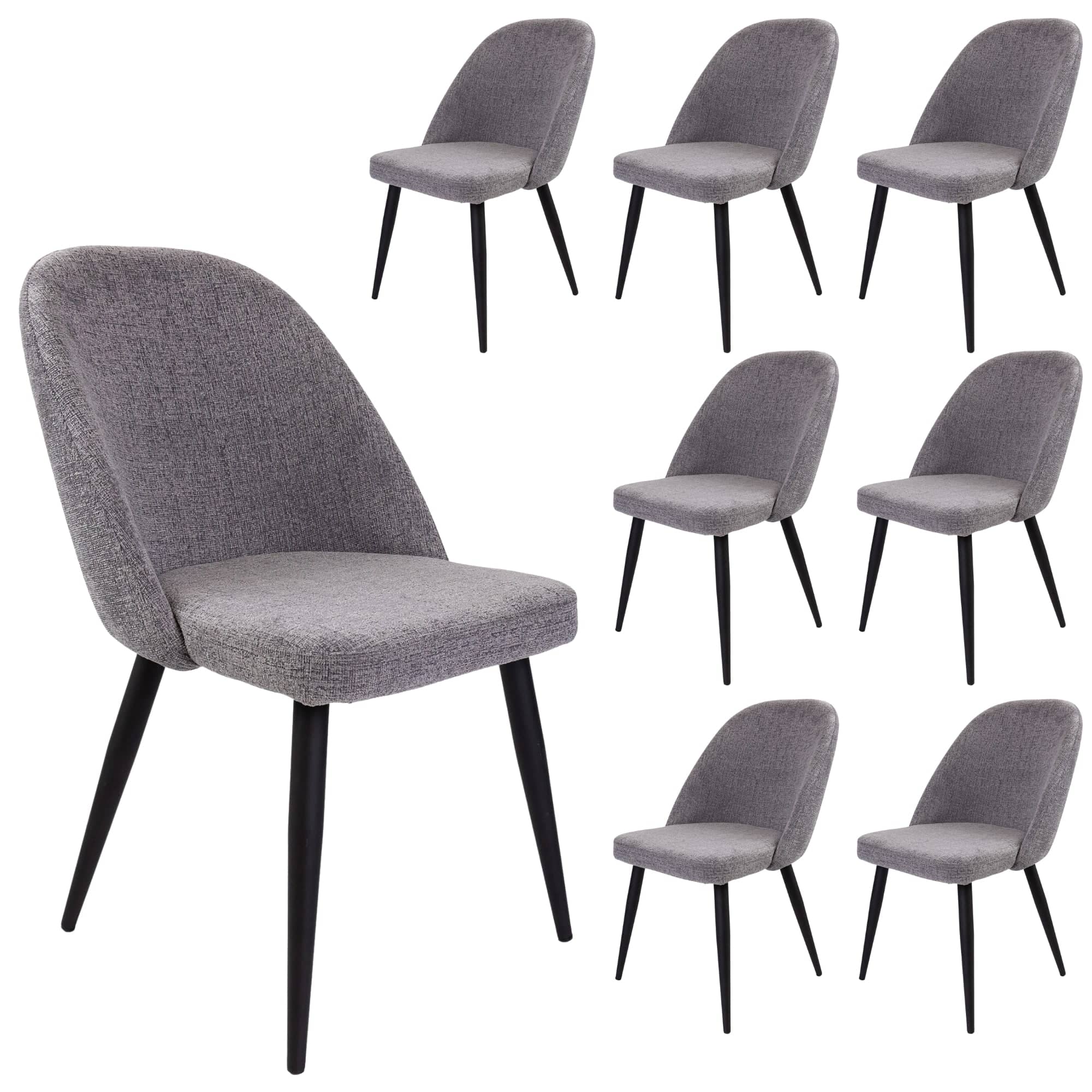 Add flawless beauty and comfort to your dining area by decorating the place with this set of 8-piece dining chairs. Designed in the Mid-Century style, the chairs are upholstered in Hampton fabric and have strong, tapered, black legs made of black powder-coated steel. A soft back makes them even more comfortable, giving them a nice look. The chairs look stunning in all decor settings, thanks to their inviting shape and fog-coloured fabric upholstery. A metal frame gives them great strength. A one-year warranty is included with the fully assembled chairs.