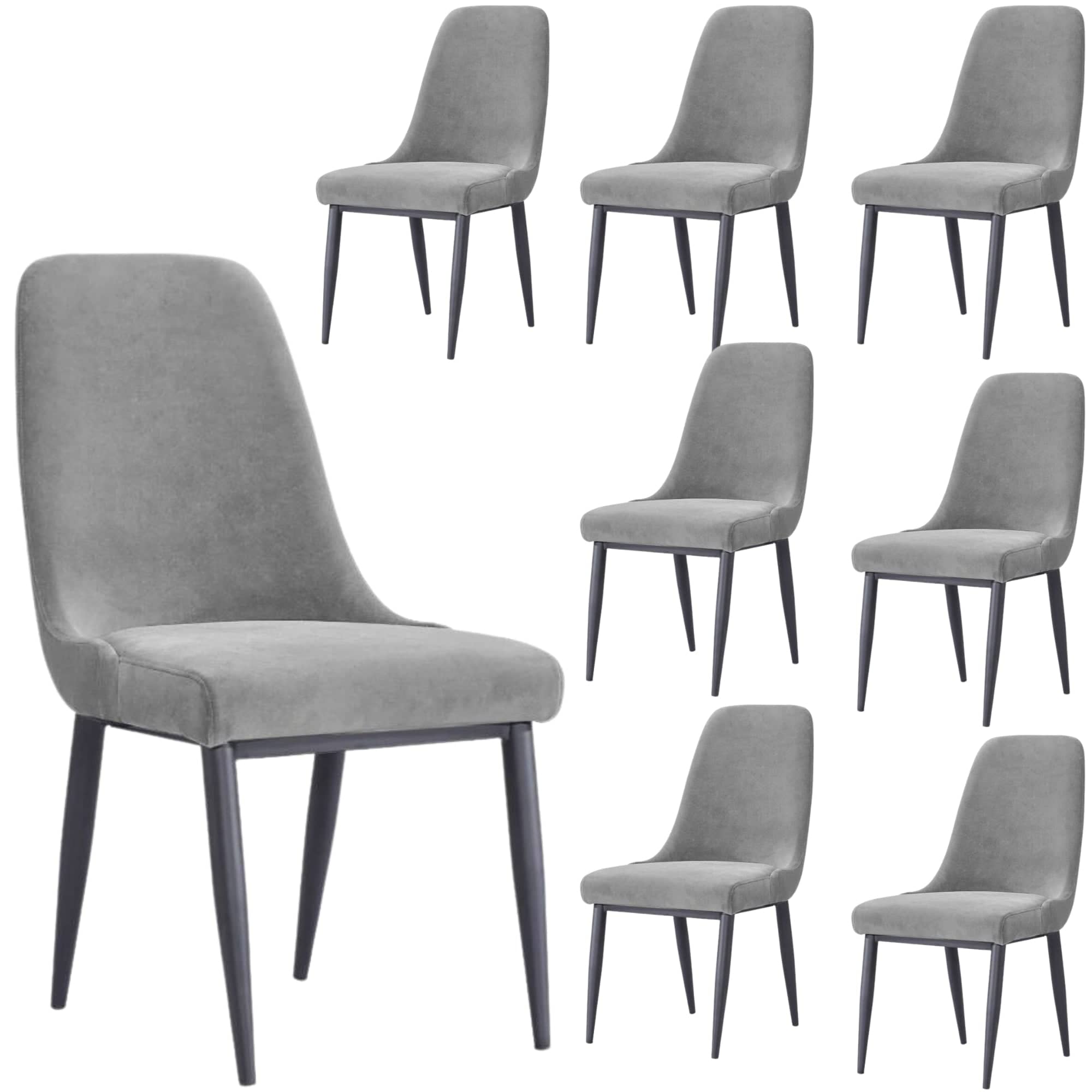 Eva Dining Chair Set of 8 Fabric Seat with Metal Frame - Grey