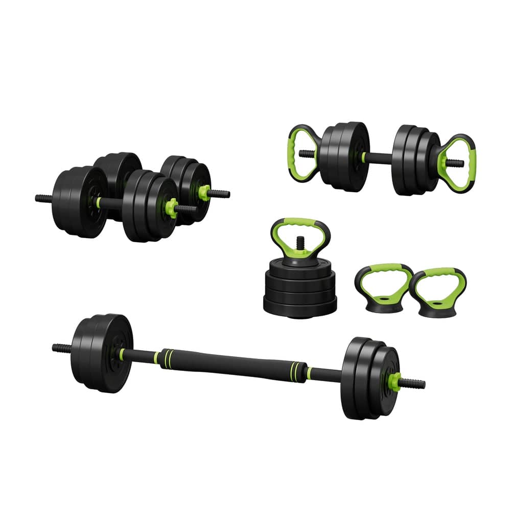 For a versatile weightlifting workout, the Everfit 7-in-1 Weight Set is an ideal fitness companion. Each weight is made from heavy-duty cast iron material, making them built to last. The set comes with all the connections and attachments you need to use the weights in a variety of ways: as dumbells, barbells, kettlebells, push-up stands and standard weight plates. The weight plates are easy to attach and remove, so you can adjust your weights to your exact fitness specifications - up to 25kg. With a foam-covered barbell bar and non-slip dumbbell handles, the weights are easy to grip and comfortable to hold throughout the exercise. The set is simple to assemble and store, so you can easily incorporate the set into your daily routine without taking up space. Our versatile set is ideal for home gym junkies interested in weight loss, strength training, endurance training, muscle gain and general cardiovascular performance. For a comprehensive workout without leaving the gym, Everfit has you covered with our 7-in-1 Weight Set.