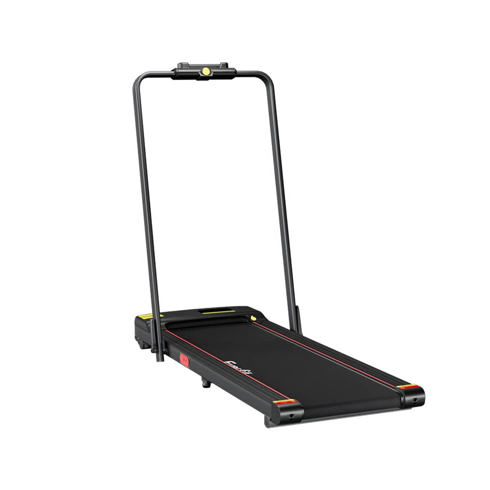 For a truly effective approach to weight loss and toning, our Everfit Electric Treadmill is your perfect companion. Compact and sturdy, the treadmill allows you to perform essential cardio exercises within the comfort of your home. It has a 2-in-1 design that is foldable, easy to move, and comes ready to hit the ground running – no assembly required. A user-centric control panel lets you set up speeds of between 1km/h and 12km/h and monitor other parameters. Its powerful and energy-efficient motor produces smooth and seamless operation and the anti-slip belt and soft-grip handlebar make your session a comfortable and controlled experience. The running belt uses an enhanced shock control system with spring, wheel and silica gel shock absorbers help to reduce the risk of joint injury and makes the treadmill suitable for both adults and seniors. When all the hard work is done, fold and store away the compact treadmill easily. Other great features include safety tether key, a remote control, smooth wheels for easy mobility. For health results that matter, our fitness treadmill is the one to run to.