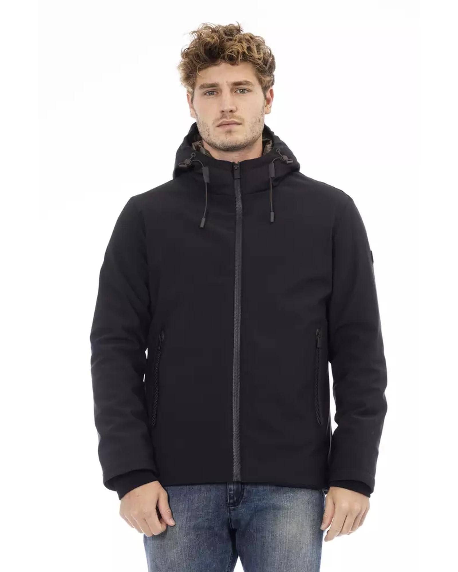 - Black polyester jacket