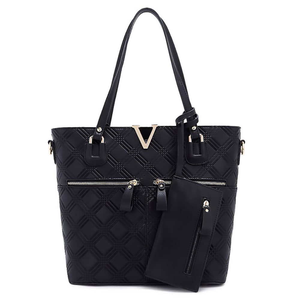 Fashionable BLACK Ladies bags, Elegant PU Plaid , Two pieces with inside small wallet