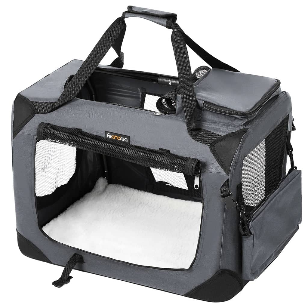 FEANDREA Dog Kennel Transport Box Folding Fabric Pet Carrier 70cm Grey