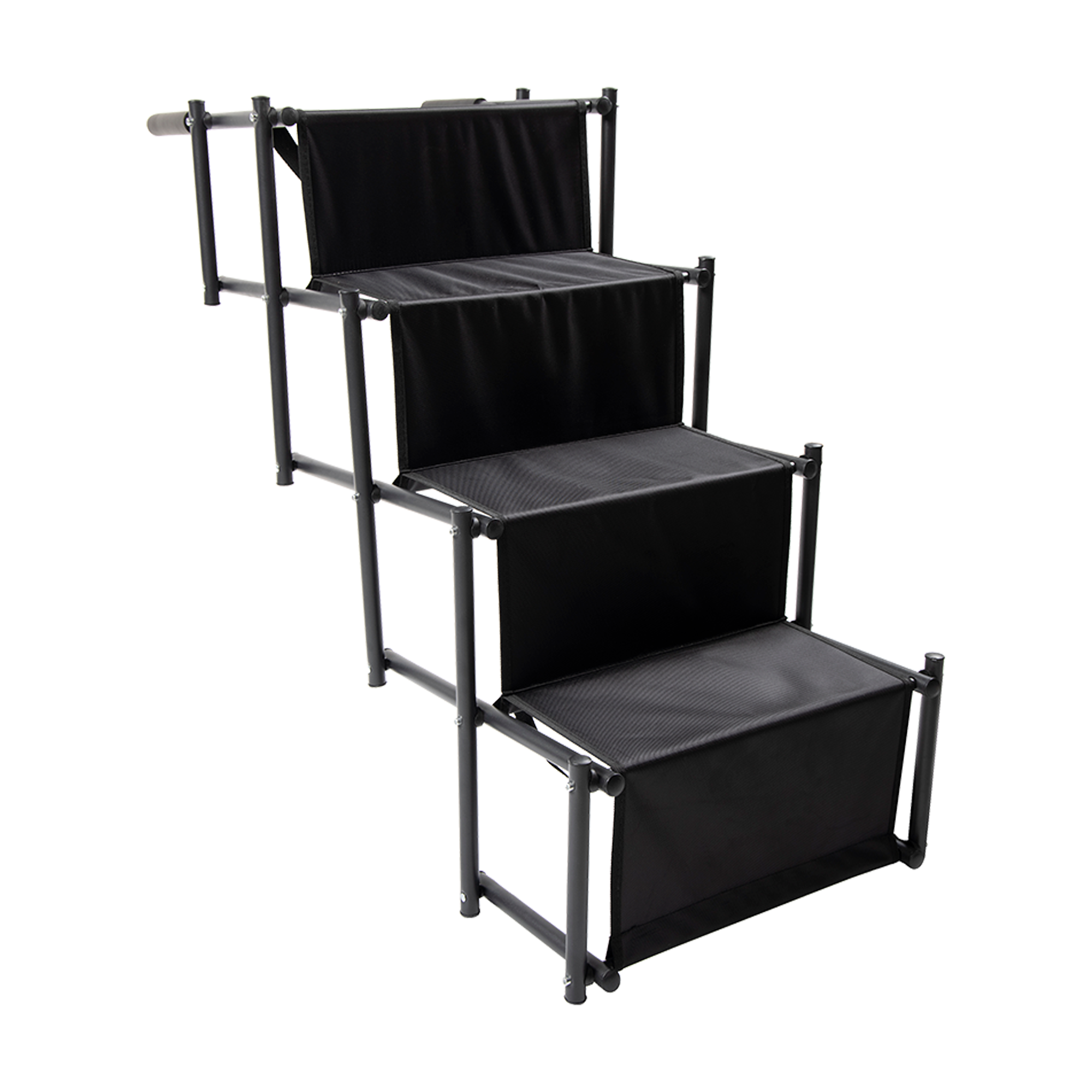Since cars and other vehicles don't come in standard heights, you can adjust these steps for vehicles of any height. Designed for safety, these steps come with a safety tether that attaches to your boot latch with a carabiner clip. That's not all. The supporting structure for these steps has anti-skid rubber feet, and each step features anti-slip. These steps don't just protect your pets, though. These steps work well with dogs of a broad range of sizes, from toy breeds to extra-large dogs up to 100 pounds. Before your next trip, do your dog a favour and order these steps today!