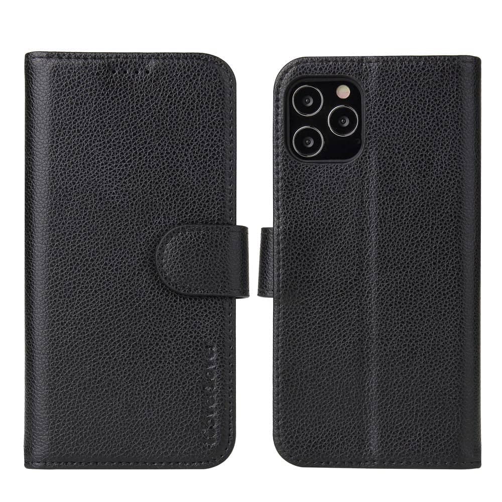 For iPhone 12 mini Case iCoverLover Black Genuine Cow Leather Wallet Folio Case