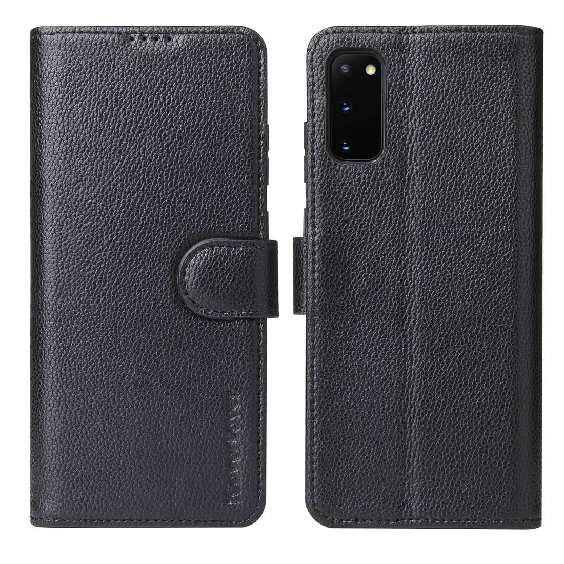 For Samsung Galaxy S20 Case iCoverLover Genuine Cow Leather Wallet Cover Black