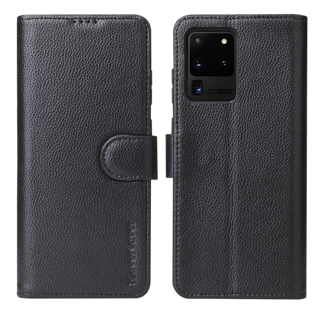 For Samsung Galaxy S20 Ultra Case iCoverLover Genuine Cow Leather Wallet Cover Black