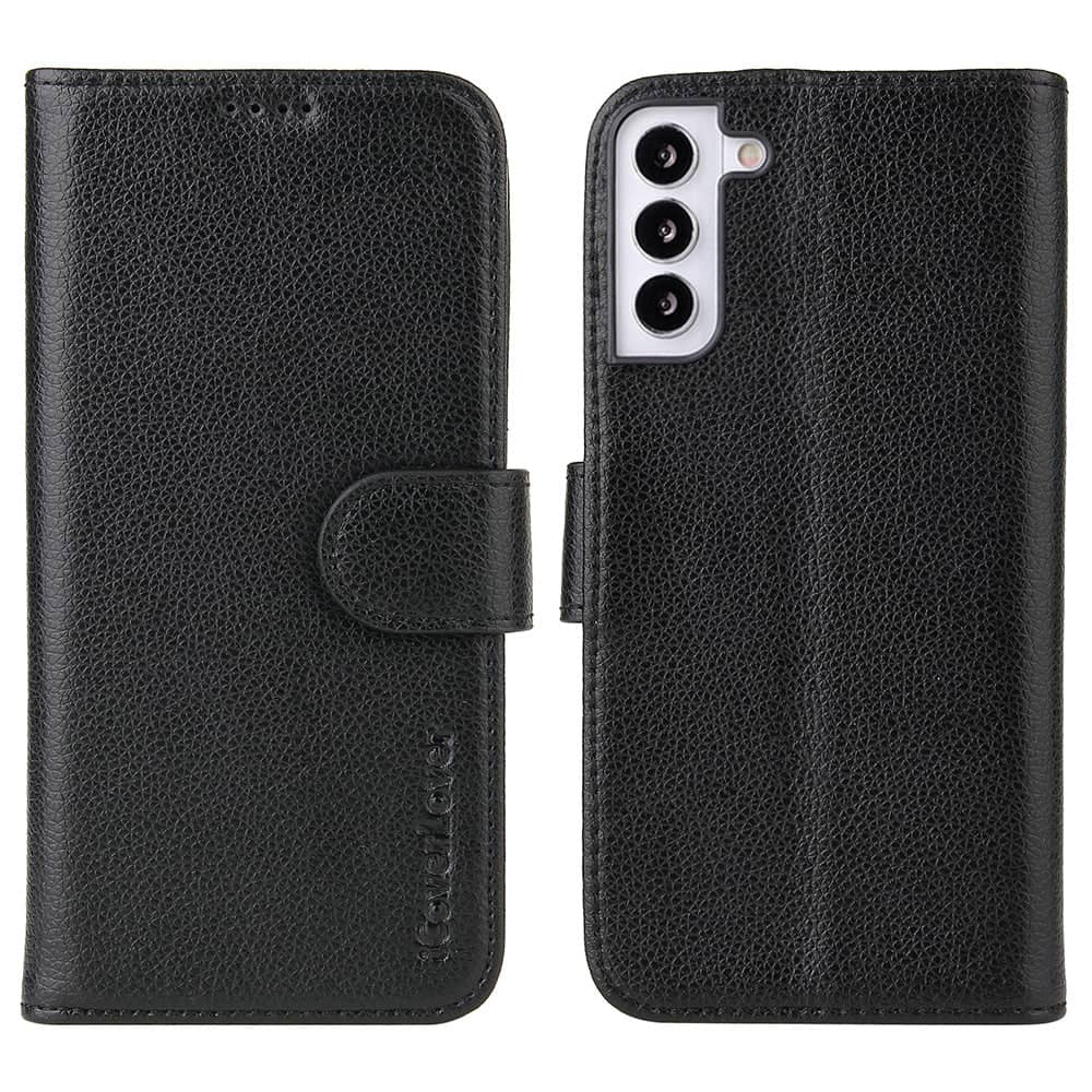 For Samsung Galaxy S22+ Plus Case iCoverLover Genuine Leather Wallet Cover Black