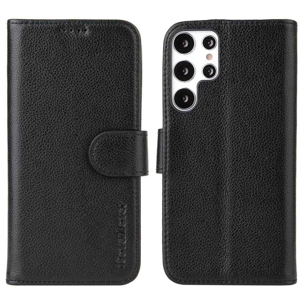 For Samsung Galaxy S22 Ultra Case iCoverLover Genuine Leather Wallet Cover Black