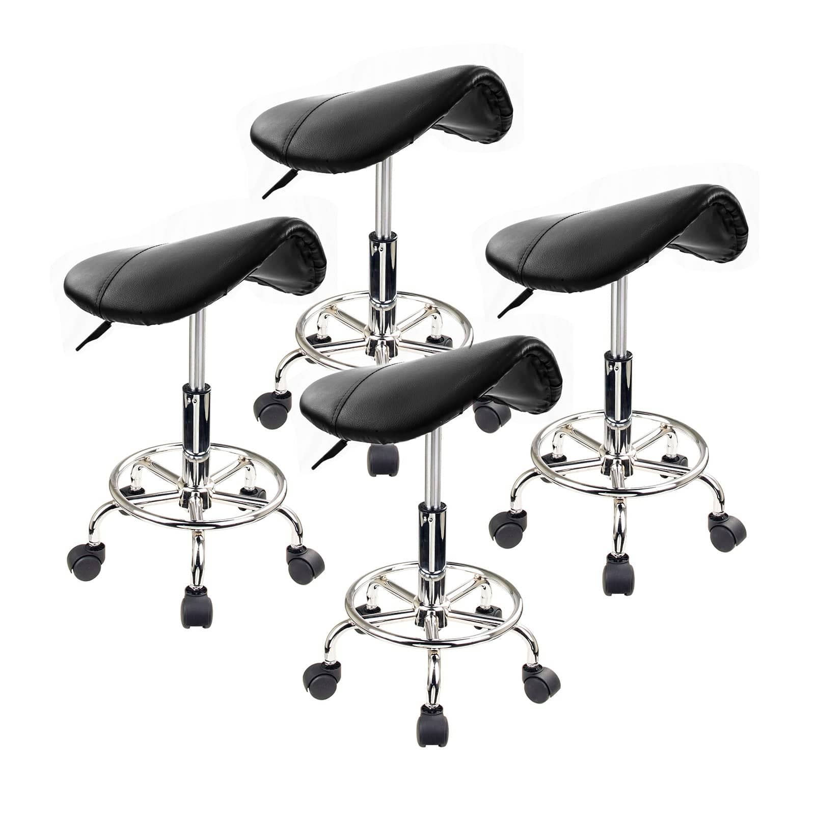- 4x 360 degree swivel black saddle stool