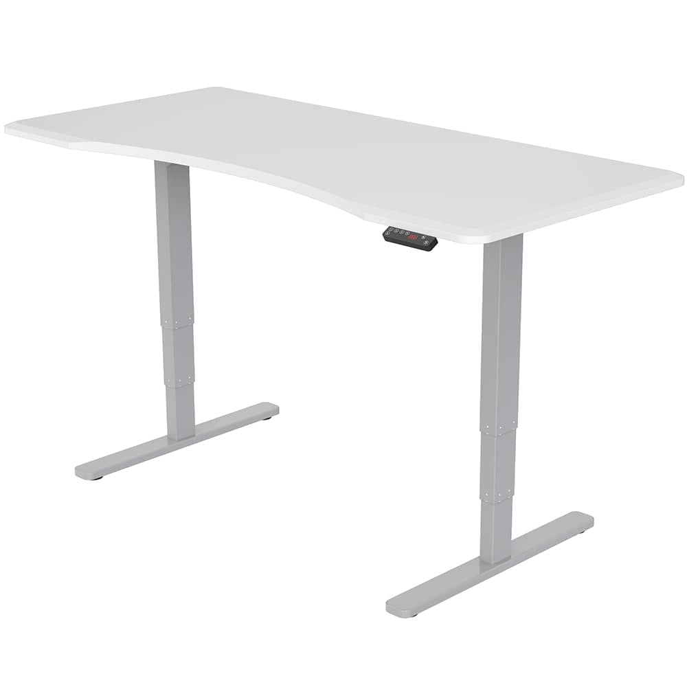 FORTIA Standing Desk, 160x75cm, 62-128cm Height, 2 Motors, 120KG Load, White/Silver
