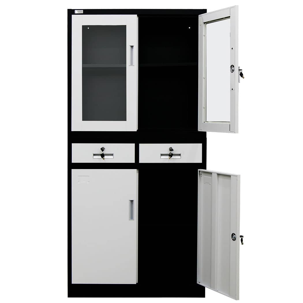 FORTIA Stationary Cabinet Office Storage Metal Lockable 4 Door Cupboard Drawers