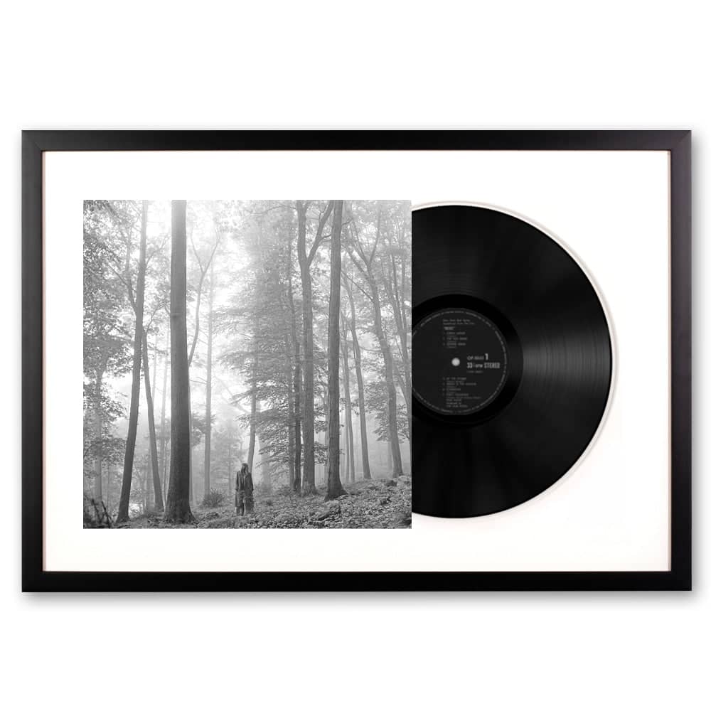 Framed Taylor Swift Folklore (In the Trees Edition) - Double Vinyl Album covers are the most recognisable and significant imagery of our lifetime. We are eager to honour and showcase this art form by framing the actual original artist's vinyl cover and vinyl record themselves. This record is framed using all wood profiles, archival matting, and UV-filtering non-glare acrylic. The cover artwork is presented in full, while the actual vinyl peeks out of the sleeve. The outer dimensions of each frame are 75 cm x 47.5 cm