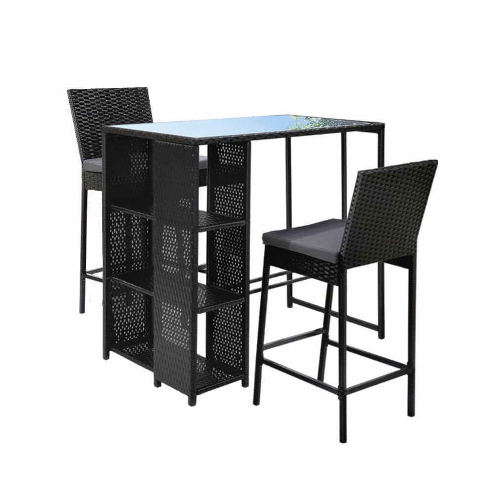 Gardeon 3 PCS Outdoor Bar Table Stools Set Patio Furniture Dining Chairs Wicker