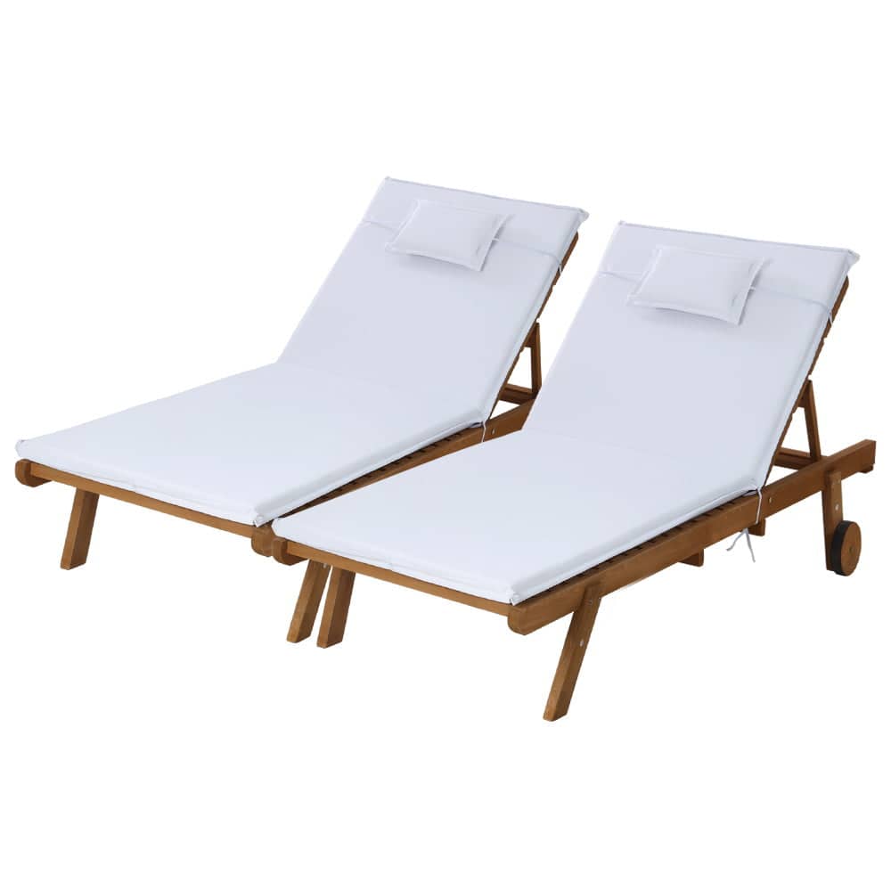 Gardeon 2pc Sun Lounge Wooden Lounger Outdoor Furniture Day Bed Wheel Patio White