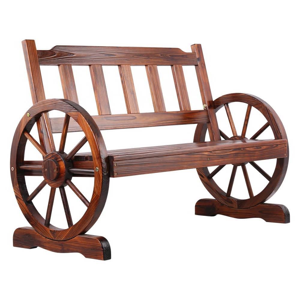 Time to have a seat on the wild wild west side. That's right, our Wagon Wheels Bench definitely looks the part to spice up your garden and backyard with some country soul.