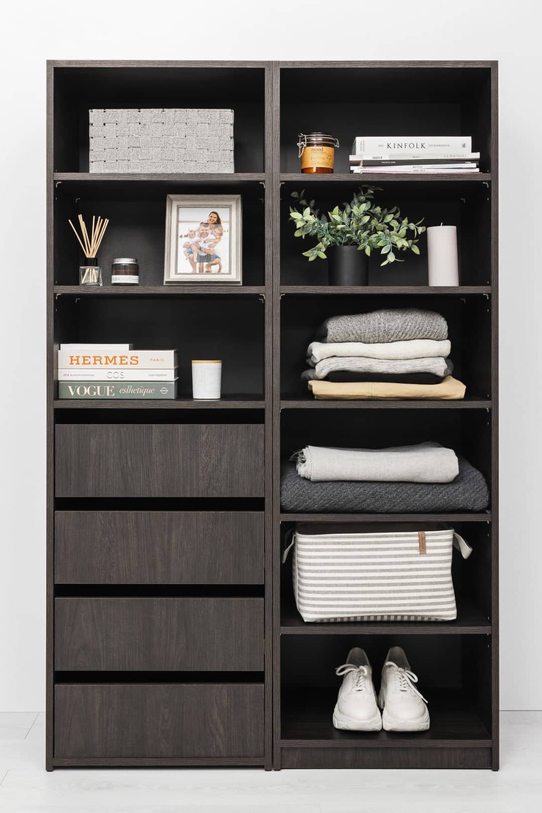 The Geneva built in wardrobe modules are made in Europe with Hafele components and Swiss Krono boards, it combines superior quality and stylish design for your storage needs. These modules can be mixed and matched to ensure the final wardrobe solution is ideal for each person. There are also easy to follow assembly videos available to make assembly a breeze. Fully Assembled this unit is 1588 H x 506 W x 400D