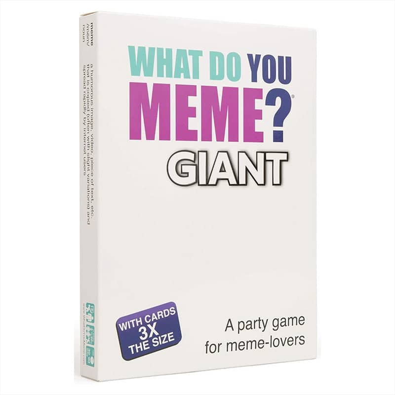 3X The Fun: Giant What Do You Meme? makes every meme funnier, every laugh louder and every game night more hilarious! Boomers, Gen X, Millennials, & Gen Z unite: This giant game was created for ages 13+. Get the whole family together to play! What's Inside: 80 Caption Cards, 20 Photo Cards & Instructions More Memes: Want more laughs? We've got you covered with a ton of expansion packs to add to the Giant Edition as well as the OG. Check out our store for more fun!