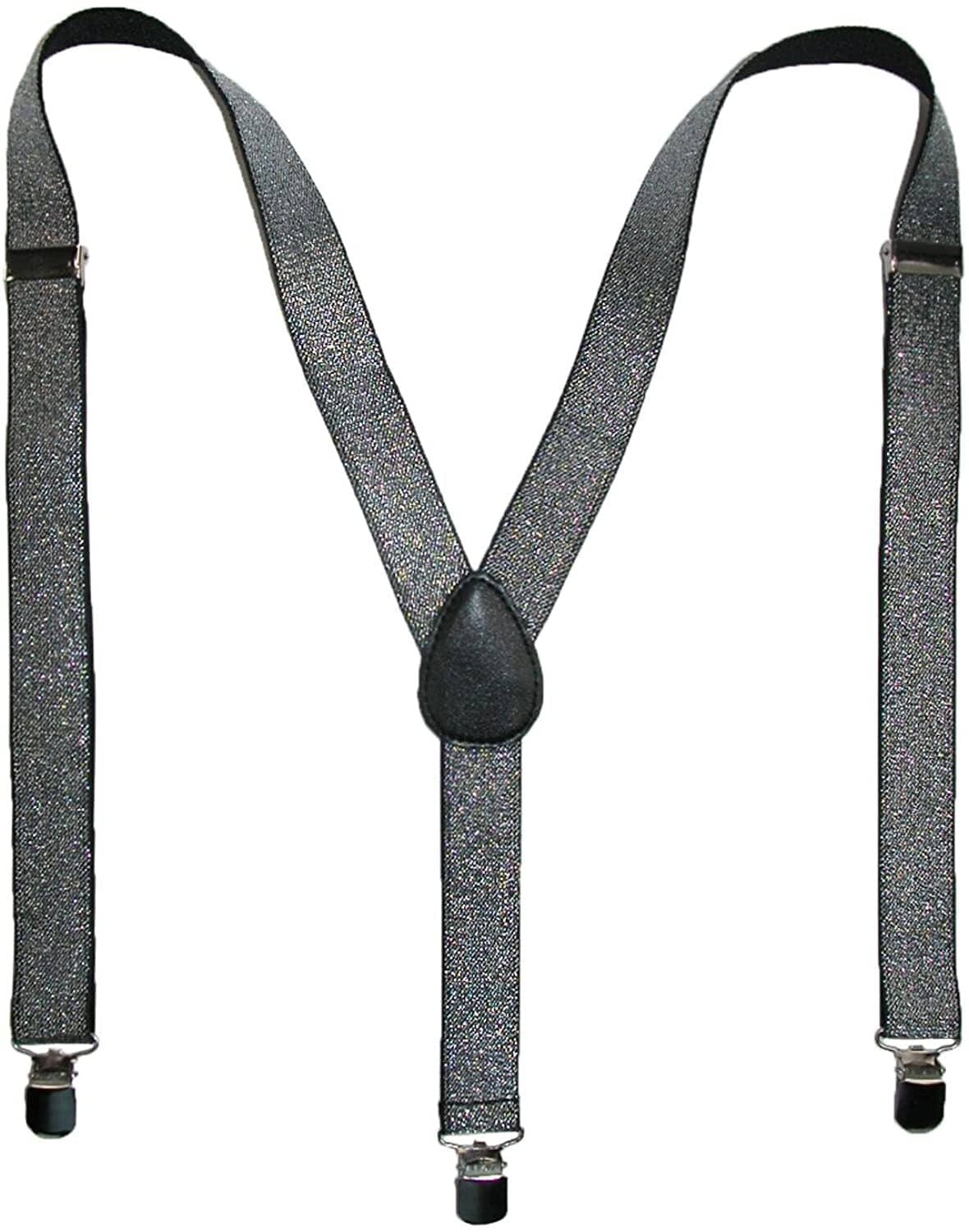 GLITTER SPARKLE SUSPENDERS Braces Clipon Elastic Y-Back Slim Adjustable - Silver (Glitter)