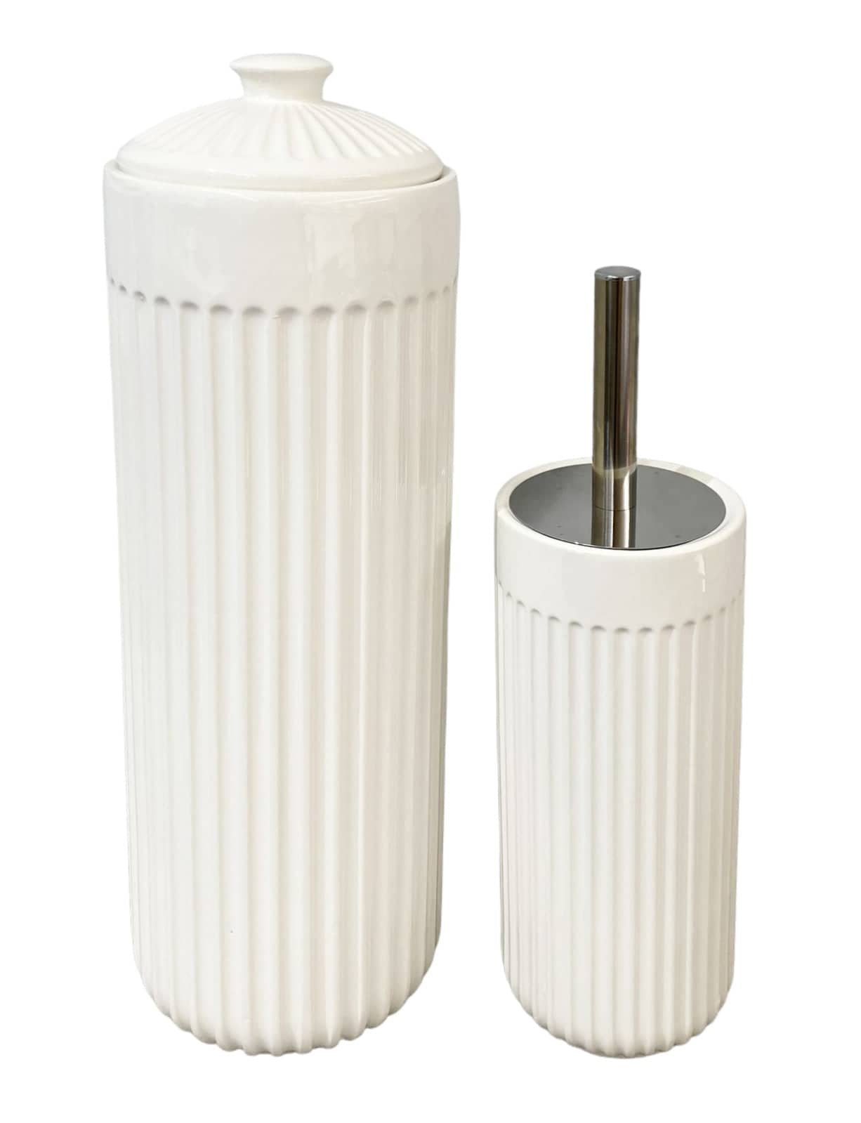 Gloss White Ceramic Bathroom Accessories Set Toilet Brush Paper Roll Holder