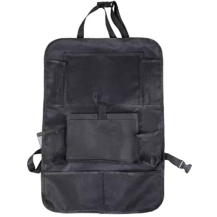 Adjustable Strap & Easy to Install: The adjustable straps of the backseat organizer allow for quick installation in most cars and SUVs. Simply hang it on the back seat, buckle it up, and adjust the length to enjoy the freedom of storage. Durable and Water-resistance Material: Made of eco-friendly 600D oxford, mesh, and waterproof PVC, these back seat protectors are strong and durable. Easily wipe away dirt and shoe prints with a wet cloth, while guarding against scratches, dirt, mud, and wear and tear. Kick Mats Back Seat Protector: This car seat protector is spacious enough to cover the entire back of the front seats, preventing dirty shoe prints. It fits most cars and includes five multi-use pockets for convenient organization. Touch Screen Tablet Holder: The transparent and touchable window can accommodate iPads and Android tablets up to 10 inches, allowing back seat passengers to enjoy hands-free entertainment. Note that other accessories are not included. 2 Design Combination: Featuring a combination of two design types and multiple storage pockets, this car back seat organizer provides ample space to meet a variety of storage needs. Brand: Gominimo Colour: Black Material: 600D oxford fabric + mesh + PVC Weight: 500 g