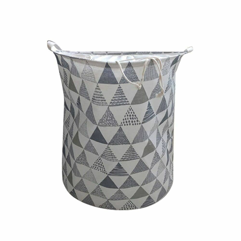GOMINIMO Laundry Basket Round Foldable with Cover (Grey Triangle) HM-LB-102-YX