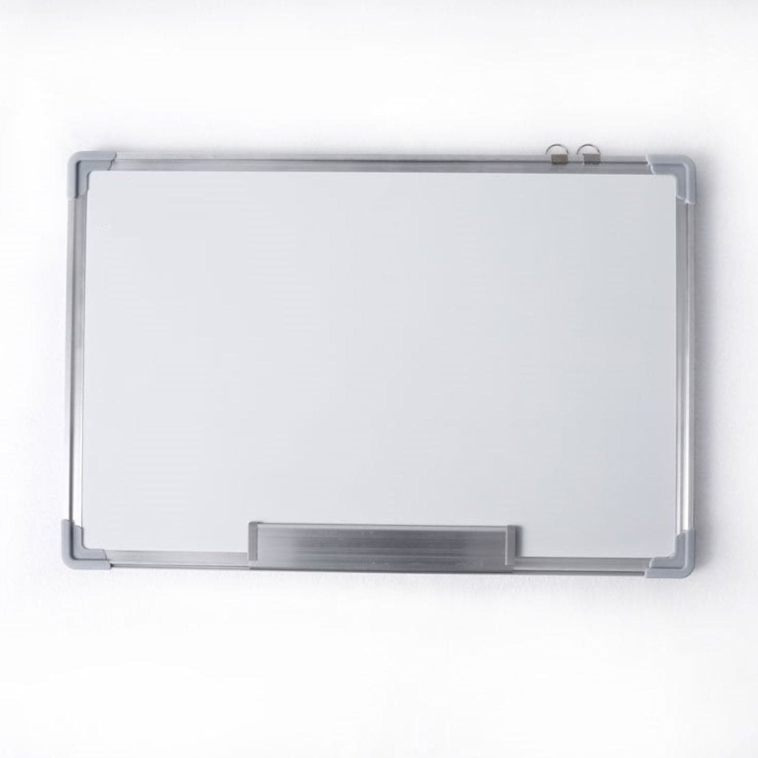 Magnetic Writing Surface: Our 90cm X 60cm magnetic whiteboard is effortless to write and wipe off. The board's durable surface stays white, ensuring your writing is clear and legible. High-quality dry erase markers are recommended to prevent ghosting. Plan Your Week: Stay on top of your schedule with our whiteboard! Use it to plan your week, take notes, and never forget an appointment or meeting again. Stay organized and stay on track. High Quality: Our whiteboard is built to last with a rust-proof aluminum frame, high-density panels, and sturdy ABS corners for protection against warping and dents. Tight screws keep it securely in place, even if bumped or knocked over. Adjustable Hanging Hook and Pen Tray: Our whiteboard comes equipped with a movable hanging hook for adjustable mounting and a movable pen tray for added convenience. It is versatile and can be used in various locations. Multi-Functional Use: Our whiteboard can be used for a variety of purposes, such as teaching, presentations, brainstorming, doodling, and more. It's a versatile tool that can enhance productivity and creativity in various settings. Brand: Gominimo Material: Aluminium, ABS Corner Colour: White Product size: 90 x 60 cm Weight: 1.62 kg Mounting Position: Wall Packaging Dimension: 91.00 x 60.00 x 3.00 cm Packaging Weight: 1.62 kg Packing Includes : 1 x whiteboard, 1 x dry erase markers, 1 x dry eraser, 2 x magnets, 3 x Non-marking nails