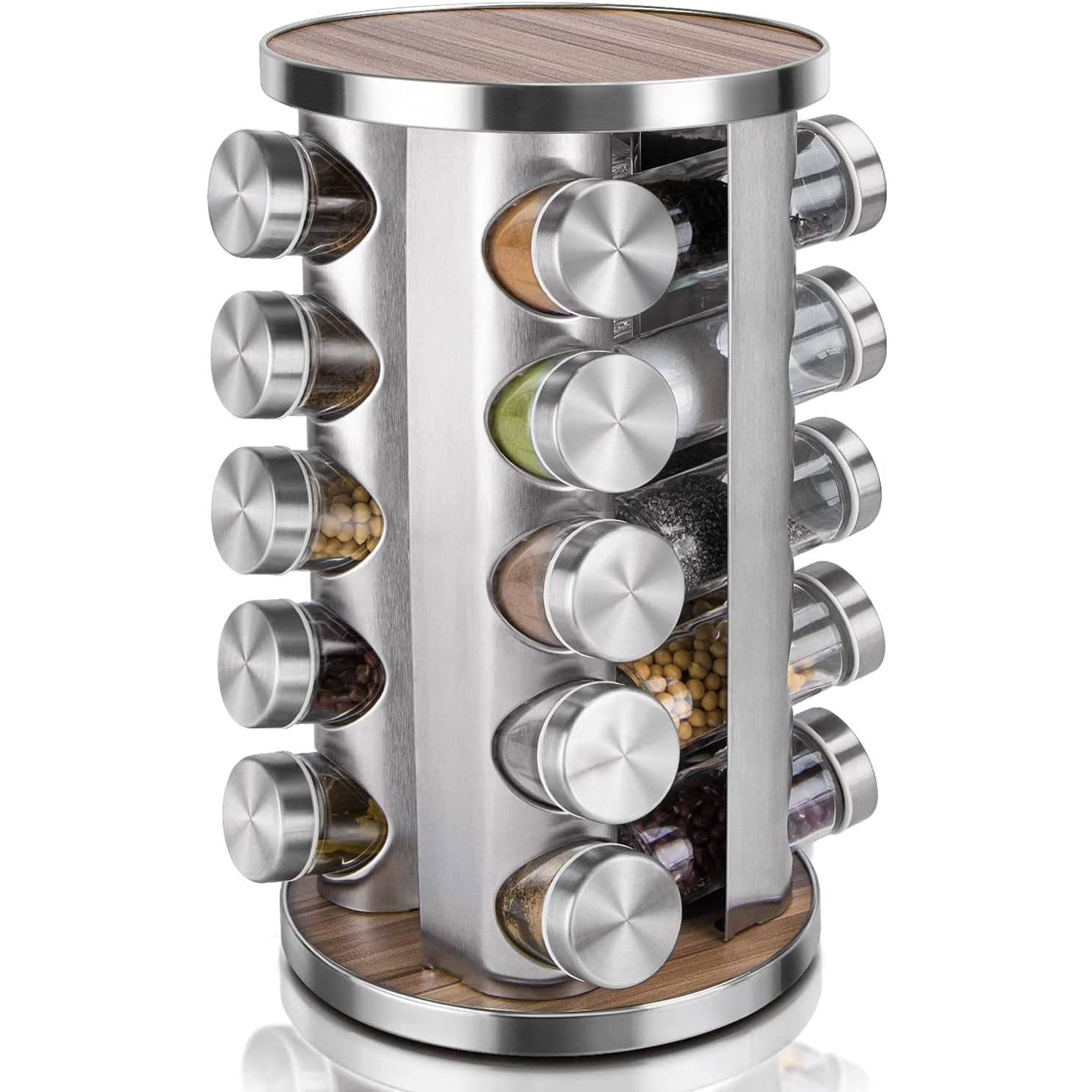 GOMINIMO Rotating Spice Rack Organizer (20 Jars) with Label Sticker and Silicone Funnel GO-RSR-104-ZK