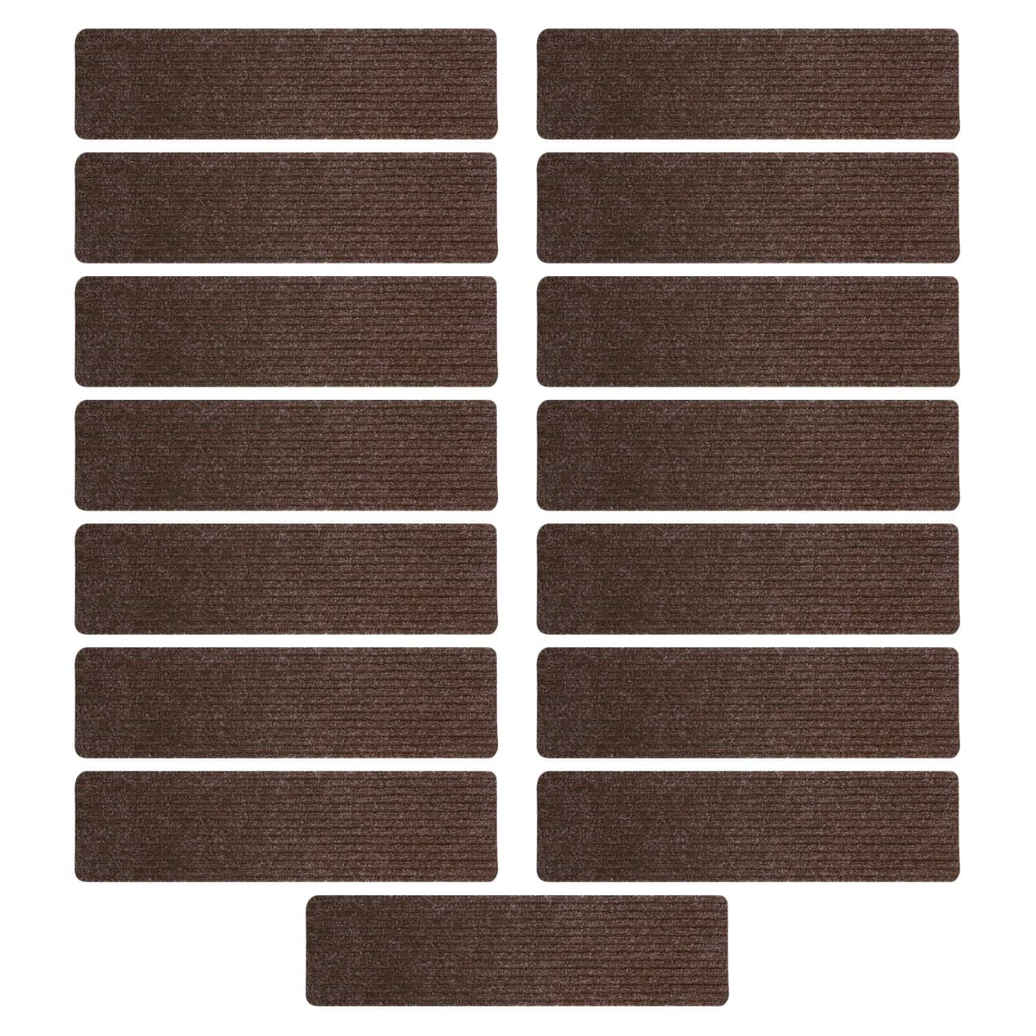 GOMINIMO Set of 15 Non Slip Carpet Stair Tread 20.3 x76cm (Brown) GO-CST-101-LD